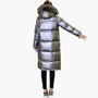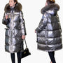 Dam Vinterjacka Lång Puffer Med Stor Pälsluva – Elegant Värmande Kappa För Kalla Dagar