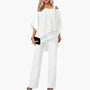 Damernas Eleganta Festset med Ponchotopp och Vida Byxor – Perfekt för Kväll och Speciella Tillfällen