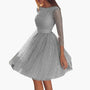 Damklänning för fest – Glittrig A-linje med 3/4 ärm och öppen rygg – Perfekt för kvällsevent och banketter