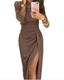 Damklänning Off Shoulder Elegant Festklänning med Hög Slits – Perfekt för Kväll & Party